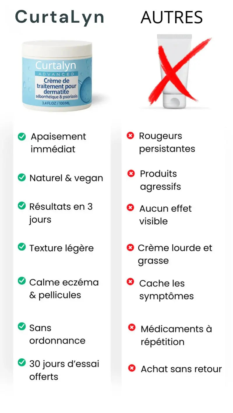 Oui, et c’est même pour cela qu’elle a été créée. Curtalyn cible les inflammations persistantes, squames, démangeaisons chroniques… Elle agit en surface et en profondeur pour calmer les poussées, réparer la peau et soulager durablement.