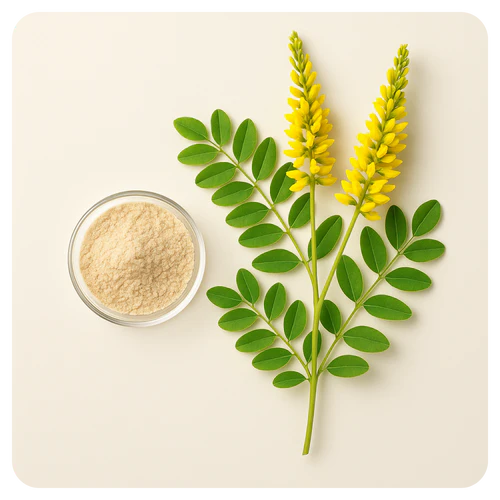 Racine médicinale utilisée en Asie, riche en flavonoïdes. Antibactérienne et équilibrante, elle régule la production de sébum et favorise une peau nette et plus saine.
